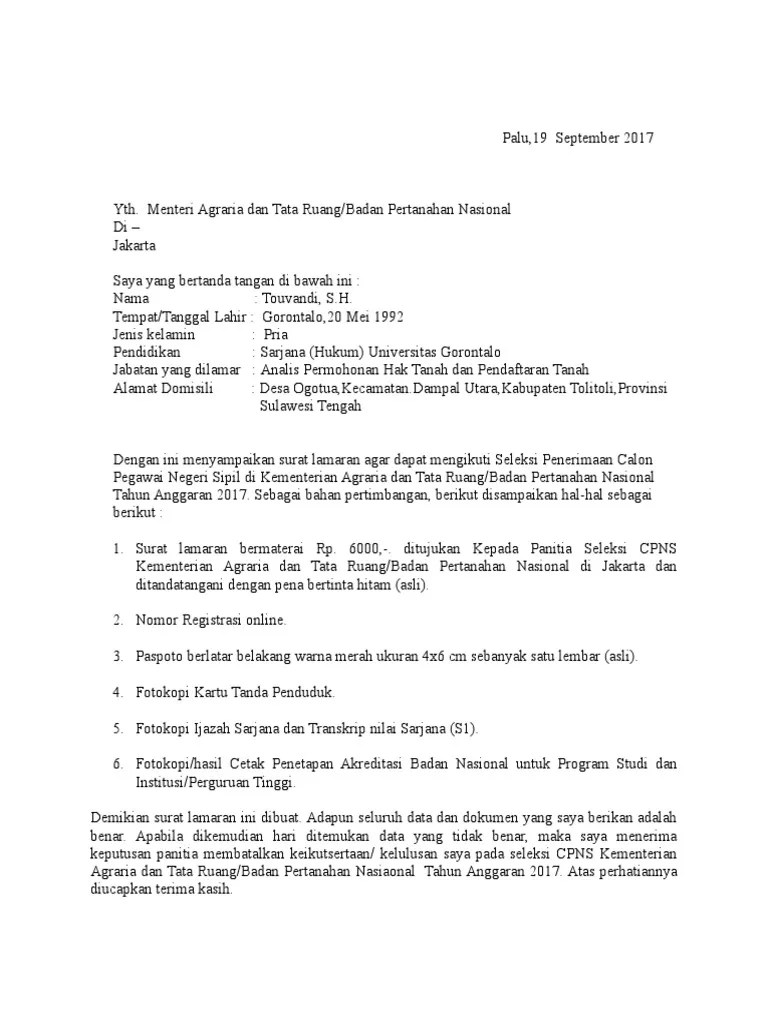 Contoh Surat Lamaran Ppnpn Badan Pertanahan Nasional : Contoh Surat Lamaran Kerja Badan Pertanahan Nasional / Kementerian pendidikan dan kebudayaan tahun 2019.